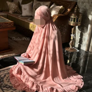 استقبلي شهر رمضان والأعياد بأسلوب أنيق ومريح مع طقم الصلاة القطعتين الفريد من Dudu Shop. تصميم عصري يجمع بين الجمال العملي، ليمنحكِ إطلالة مميزة سواء للصلاة أو الخروج.